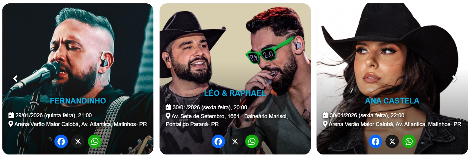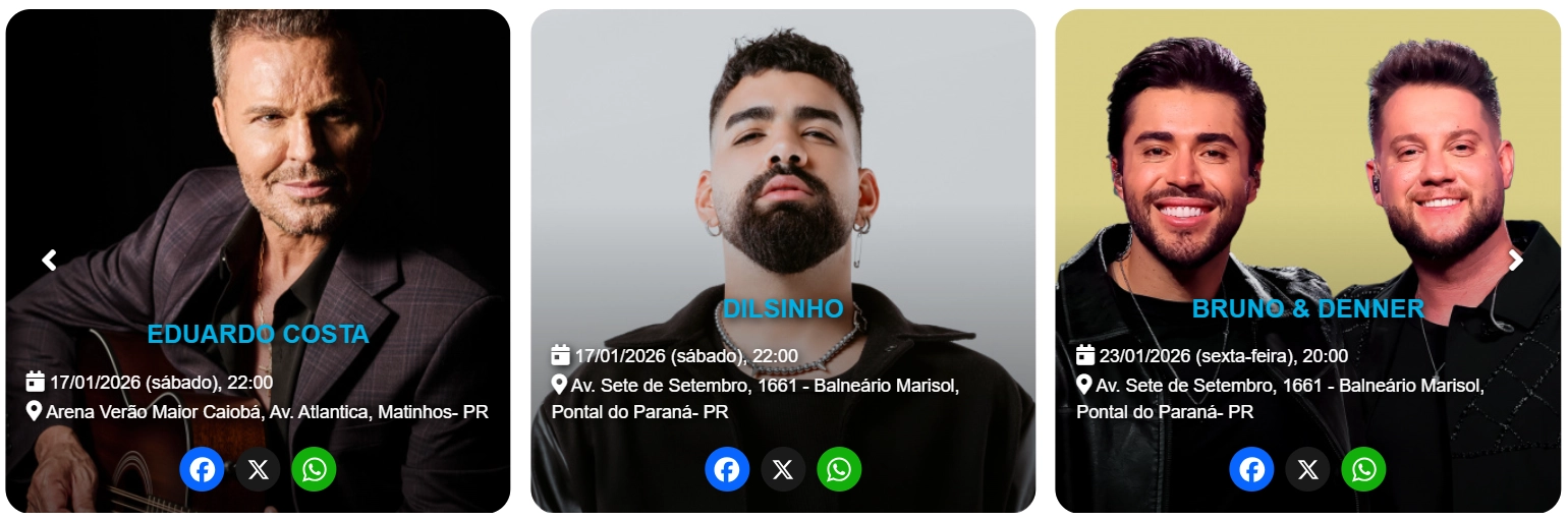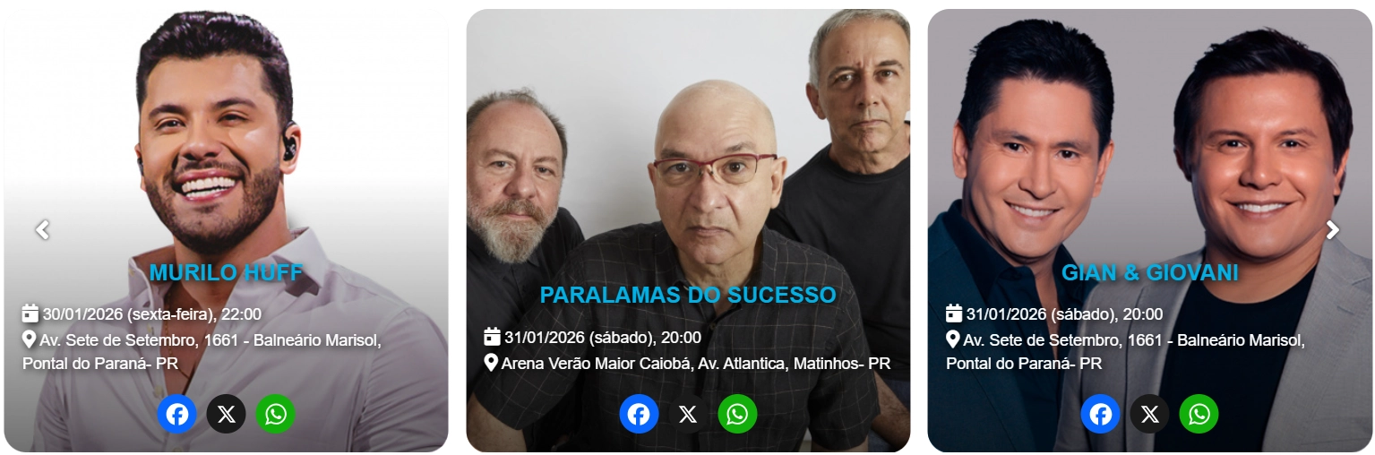 CALENDÁRIO SHOWS E EVENTOS DO VERÃO MAIOR PARANÁ 2026